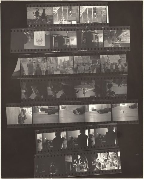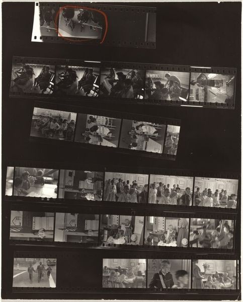 Curator: This is a page from a scrapbook by Sir Eduardo Paolozzi. The support is 309 x 251 mm. It has a dreamlike quality, doesn't it? Editor: It certainly has a surreal collage feel. I'm struck by how Paolozzi juxtaposes these images from mass media. What's the context here? Curator: Paolozzi, born in 1924, was deeply engaged with post-war consumer culture. This piece speaks to the intersection of technology, gender roles, and the construction of identity through advertising. The woman on the phone, the machinery... it's about the promises and anxieties of progress. Editor: And the materiality of it – the cut-and-paste method, the use of pre-existing images. It's a commentary on the disposable nature of these images and their role in shaping our desires. Curator: Precisely. He's dismantling the idealized image of progress and exposing the underlying power dynamics at play. Think about the crowns on top of that backdrop on the left side; they seem to mock the whole arrangement. Editor: It's all about revealing the labor and the process behind the image itself. The scrapbook form underscores this. It's not a finished product; it's a process of critical engagement. Curator: A powerful deconstruction of the mid-century world. It encourages us to question the narratives we consume. Editor: Indeed, a reminder of the constructed nature of our reality.