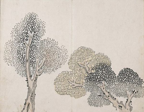 Curator: Immediately striking, isn't it? The delicate application of color creates such a soft and atmospheric feeling. Editor: Indeed. I am reminded of a hazy memory, and the texture of the paper itself is palpable. This piece, entitled "One of Six Views of Atsugi," was created by Watanabe Kazan. Kazan, who lived from 1793 to 1841, was not only an artist but also a scholar and a retainer of the Tokugawa shogunate. Curator: It's interesting to consider Kazan's position within the shogunate. His social standing would have certainly influenced both his subject matter and the reception of his art. Do you think that the materials impacted this artwork? Editor: Absolutely. The use of ink and light washes on paper speaks to a tradition of literati painting, where the artist's hand and the inherent qualities of the materials are celebrated. One can imagine the artist carefully selecting the paper, preparing the ink, and then skillfully manipulating the brush to achieve the desired effect. Curator: The birds in flight, the architecture of the building, and the artist's interest in perspective—all hint at the influences of Western art, which was beginning to enter Japan at that time. I wonder what the cultural milieu was at the time this artwork was made. Editor: What I see is a tranquil scene in a tumultuous period, crafted with simple tools yet resonating with immense cultural depth. Curator: A fusion of artistic traditions, reflecting a society in flux.