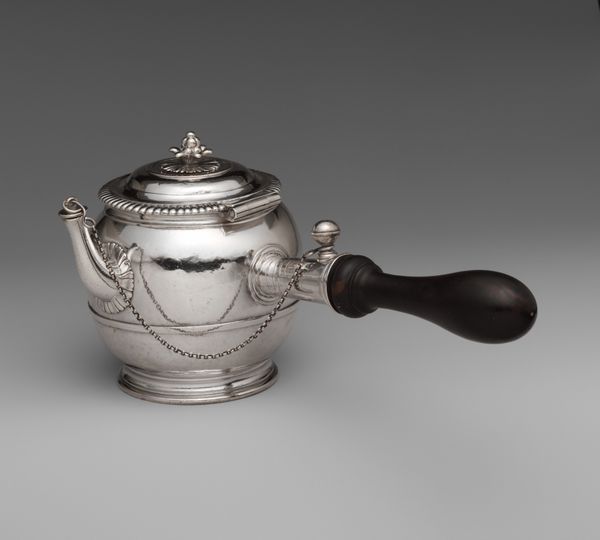 Editor: We’re looking at a silver miniature kettle with a brazier, made in London around 1718 or 1719. The craftsmanship seems incredibly delicate, and it feels so precious, like a treasure from a dollhouse. What do you see in this piece beyond its obvious function and beauty? Curator: I see layers of cultural memory embedded in this miniature. The kettle itself speaks to the rise of tea culture in the 18th century. Tea wasn’t just a drink; it was a social ritual, a symbol of status, and a potent emblem of globalization. Look at the diminutive scale. It implies intimacy, but what does this intimate act evoke? Editor: Perhaps a sense of domesticity and personal comfort? Curator: Exactly. But consider also how the Georgians used silver—a material linked to wealth and privilege—to shape these domestic rituals. Doesn't it seem loaded with symbolic weight? And see how the brazier elevates the kettle; a literal elevation but symbolic too. What could the upward thrust, the verticality suggest in relation to the user of this delightful item? Editor: Maybe a reaching for something more, an aspiration beyond the everyday? A striving for refinement? Curator: Precisely! The symbols speak of an ambition to elevate one's social standing and perhaps their cultural taste too. This piece is more than just a fancy kettle; it’s a container brimming with cultural narratives, ready to be poured out and examined. Editor: That’s fascinating! I'll definitely look at objects like this differently now, appreciating the stories they silently carry. Curator: And I will reflect on the psychological importance of everyday elevation as a key component of a healthy emotional architecture. Thank you for sharing your insights!