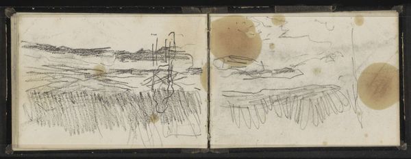 Anton Mauve created this sketch of a standing figure in a hilly landscape in the Netherlands during the late 19th century. Mauve was a leading figure in the Hague School, which emphasized realism and the depiction of everyday life. His loose sketch of a figure and a landscape is rendered in muted tones of gray, mirroring the somber atmosphere often associated with the Dutch countryside. One can almost imagine the weather; a cold grey day that speaks to a strong cultural connection with the land. The Rijksmuseum, where this sketch is housed, plays a vital role in preserving and showcasing Dutch artistic heritage. Works like these contribute to a collective understanding of national identity and cultural values. This sketch reflects a broader cultural interest in representing the rural landscape and its inhabitants with an honest gaze. Analyzing Mauve's sketch through a socio-historical lens provides insights into the cultural values and artistic practices of the Netherlands during the late 19th century. Examination of exhibition records, artist biographies, and cultural publications will further enrich our understanding.