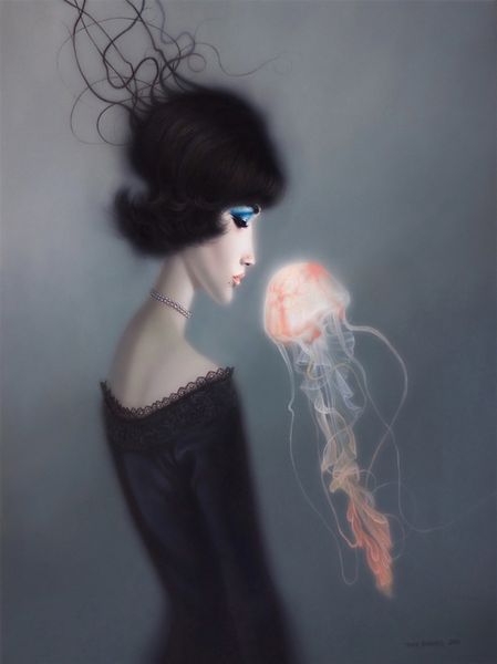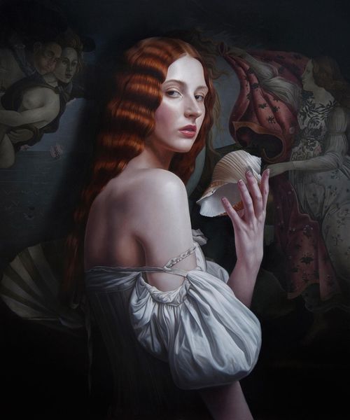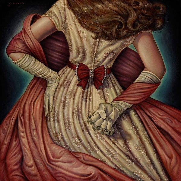 Kun Wang's "Royal Chambermaid" offers us a study in contrasts, of textures and forms. The subject, a woman viewed from the back, is draped in fabric whose texture seems to melt into the smooth skin. Above her, a stone carving looms, hard and permanent, etched with figures that tell their own silent story. The subdued palette invites a focused reading, it draws our eye to the composition, to the subtle interplay of light and shadow. Note how the artist directs our gaze from the soft folds of the headdress, down to the vulnerable expanse of the back, and further into the rich fabric pooling at the base. Wang has made more than just a portrait; he destabilizes the traditional form of portraiture by obscuring the face of the subject, and he offers us instead a semiotic puzzle. We are left to wonder, what stories are carved into the stone, and what hidden narratives are we invited to project onto this quiet figure? It's here, in this play of light and dark, stone and skin, that the artwork truly comes alive.