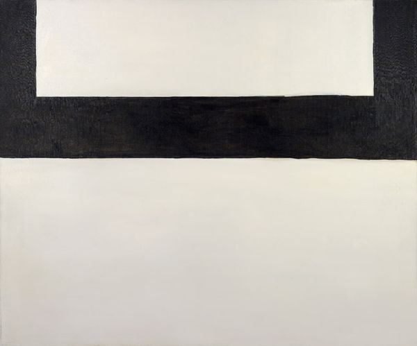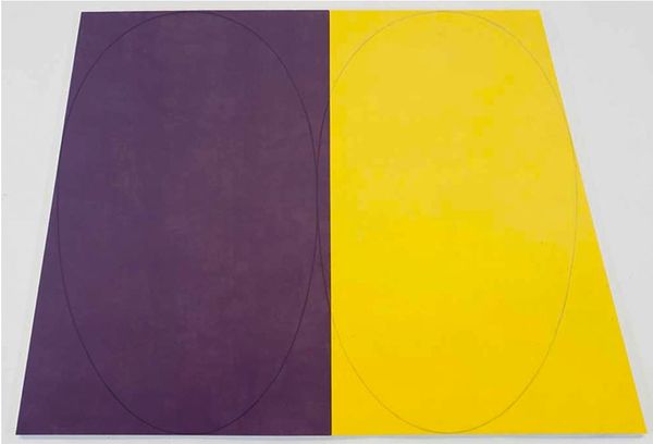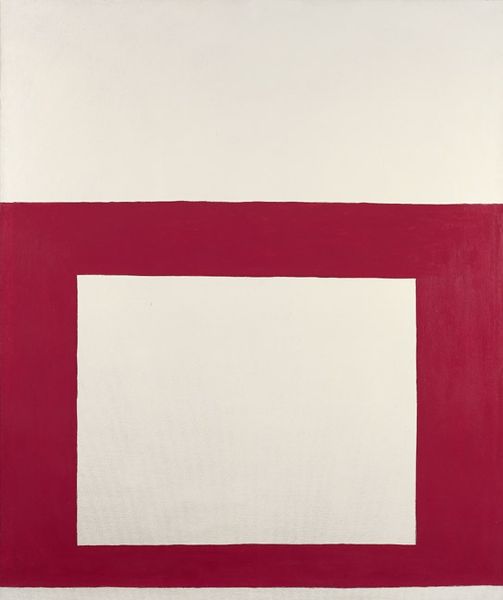 Curator: Standing before us is Perle Fine's "Cool" Series No. 2 (Yellow over Tan), an acrylic painting on canvas dating to 1963. What's your immediate impression? Editor: Minimalist calm. The soft yellow and pale tan create a muted, almost serene effect, yet the sharp geometric forms lend a sense of modernist formality. It's all about the interplay between color and form, wouldn’t you agree? Curator: Precisely. Fine's movement through Abstract Expressionism towards a more restrained geometric vocabulary is evident here. "Cool" Series, it can be argued, signifies not only her shifting artistic inclinations but also subtly responds to the socio-political landscape of the 60's, marked by the burgeoning Civil Rights movement. This quiet abstraction stood in contrast to some of the more angst-ridden artwork produced during that period. Editor: The simplicity almost belies the complexity of achieving such a harmonious balance. See how the yellow doesn't just sit next to the tan, it seems to emanate from it? The texture too... there’s a slight, visible brushstroke, a tangible sense of the artist's hand. And this challenges the pure abstraction. What were her intentions? Curator: It is widely thought that she used to reference nature throughout her abstract expressionism, but then her shift, her development into the world of geometric vocabulary changed the very fundamentals of her art. She stripped down that representation, but retained the spirit of these forms which would often create debate between her abstract and geometric colleagues. Editor: An intriguing intersection. Perhaps that duality is what gives this painting its strength; that sense of both considered design and inherent tension within her new language for creating works of art. Curator: Indeed. These pieces offer a chance to look deeper not just into a moment, but within an environment or culture as a whole, which can often impact its interpretation and relevance throughout society. Editor: I find myself considering how shape, color, and execution, through her hand, interact to engage the viewer. Fascinating!