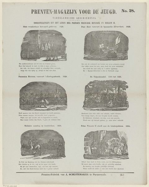 This print by Dirk Noothoven van Goor depicts scenes from the lives of Princes Frederik Hendrik and Willem II. Across these vignettes, the consistent presence of figures in military attire evokes the concept of leadership and authority. Note how the motif of a leader on horseback appears. This recalls equestrian statues seen since antiquity and is often associated with power and control. The horse, a symbol of virility and strength, amplifies the leader's commanding presence, deeply embedding this visual in our collective memory as an emblem of dominance. Consider too, the psychological weight of these historical depictions. Each scene contributes to a broader narrative of Dutch identity and valor, playing upon the emotions and subconscious associations linked to national pride. These symbols are not static. They evolve, resurface, and adapt, reflecting changing cultural values and psychological states, perpetually engaging us in a dialogue between past and present.