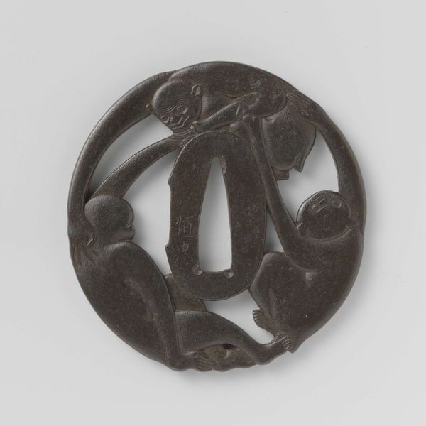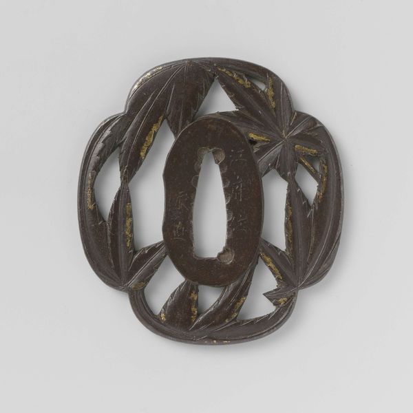 Editor: This piece is a hand guard by Toshinaga, crafted sometime between 1700 and 1800. It's made of metal and looks like it has some geometric floral or vegetal shapes. It gives me the feeling of intertwining strength and beauty. What do you see in this work? Curator: This hand guard offers a fascinating entry point into examining the samurai culture of the Edo period and its intersections with identity, power, and aesthetics. Its very existence speaks to the rigid social structures of the time, doesn't it? These guards weren’t mere protection, but visual declarations of status and allegiance. Editor: So, the design itself would have communicated a lot to someone who knew the visual language? Curator: Absolutely. Consider the craftsmanship: the detailed carving on metal, transforming what could be a purely functional object into something of beauty. This speaks volumes about the resources commanded by the samurai class, and the artisans dependent upon that social hierarchy, wouldn't you say? Editor: I see what you mean. It's easy to look at it as just a decorative object now, but back then, it was tied into very specific social dynamics. Curator: Precisely. And look at how its beauty also serves to legitimize power and violence; the floral motif can represent peace and refinement alongside militaristic prowess. Where does the beauty truly lie when contextualized this way? Editor: That's a great point. It changes my whole understanding of what I'm looking at. I'm now thinking about all the social forces it represents. Curator: That’s precisely what critical engagement can offer. It is essential for considering artwork as a dialogue with historical narratives and as expressions of gender, class, and identity that go far beyond just admiring its visual qualities. Editor: Thanks! I never considered this art piece to be a declaration of social power, until now!