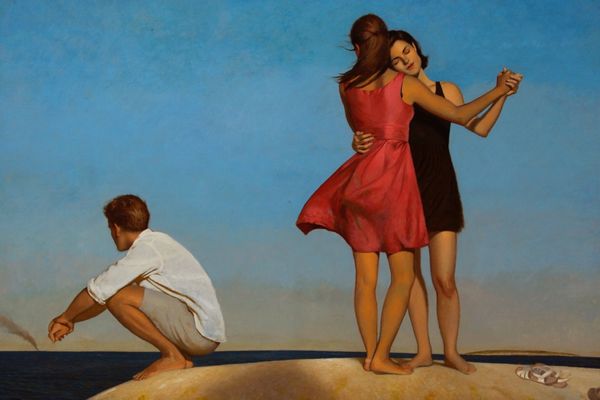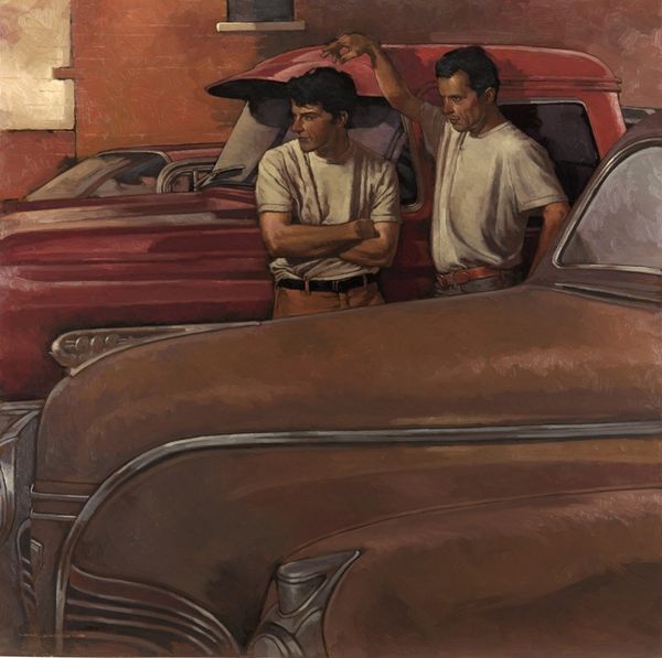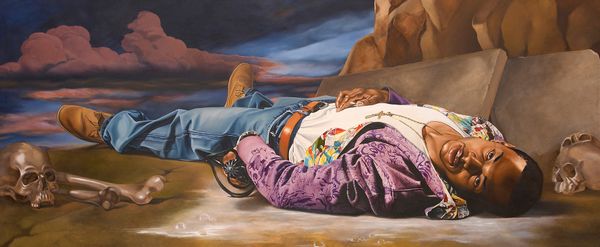 Bo Bartlett’s painting, *A Miraculous Outcome*, presents a scene rendered meticulously in oil. The painting's smooth finish and precise detailing lend it a sense of hyper-reality, a quality achieved through careful layering and blending of the medium. The material qualities of oil paint—its viscosity, luminosity, and capacity for blending—allow Bartlett to create seamless gradations of tone, which are essential to his style. In contrast to more gestural, expressionistic approaches to painting, Bartlett’s technique emphasizes control and refinement, and speaks to traditions of realism. The way that light plays across the overturned vehicle, highlighting every curve and dent, evokes a sense of the car's material presence, drawing attention to its manufactured form. The embrace of the figures, rendered with the same attention to detail, is a testament to the human capacity for empathy and connection, reminding us of the shared vulnerability that binds us together. Through his skillful use of oil paint, Bartlett elevates a mundane scene into something extraordinary.