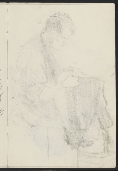James Ensor sketched 'Ensor’s Sister at the Keyboard' using graphite on paper. The subdued palette and sketch-like quality create an intimate, almost melancholic atmosphere. The composition focuses on the figure of Ensor's sister, her form rendered with delicate, tentative lines that capture her in a moment of quiet concentration. Notice the contrast between the more defined lines of her profile and the looser, more gestural marks that suggest the surrounding space and the keyboard itself. Ensor uses line and shading to convey depth, but also to create a sense of ambiguity. The use of graphite allows for a wide range of tonal values, from soft grays to deeper blacks, which Ensor exploits to create a sense of form and volume. The sketch destabilizes the traditional portrait, focusing less on precise representation and more on capturing a fleeting impression. This evokes a feeling of transience and impermanence. The very structure of the sketch, with its emphasis on line and form over detail, serves to challenge our expectations of representation, inviting us to engage with the work on a more conceptual level.