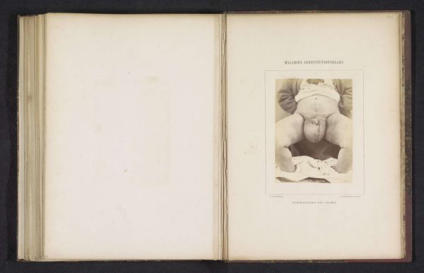 Curator: This photograph, dating from between 1860 and 1868, is titled "Portret van een onbekende jongen die lijdt aan alopecia areata," or "Portrait of an unknown boy suffering from alopecia areata," created by A. de Montméja. It's quite striking. Editor: Haunting, wouldn't you say? He looks so somber. It’s an intimate moment, this capture of vulnerability. I can almost feel the weight of his unease. Curator: As a photographic portrait, it's fascinating to consider its context. Photography at the time was often intertwined with scientific documentation, aiming for objective representation, yet the emotional impact is palpable here. It’s a realism shaped by the clinical gaze. Editor: And the child's clothing—the jacket, the stiff collar—almost seem to accentuate the starkness of his condition, like an attempt to normalize the abnormal. I keep wondering about the power dynamics inherent in taking this picture, a possible intrusion. Curator: Precisely. It raises ethical questions. Who has the authority to frame this suffering as an object of observation, of visual record? Where does observation end and exploitation begin? Editor: Yes, and did the family receive something in return for allowing this? These types of images often existed in the liminal spaces between public spectacle and private life, offering insights into social and economic realities of the period. Curator: Also, we should consider the very materiality of this photograph—the process of its creation, from the light-sensitive chemicals to the final print—as part of its meaning. The method lends a specific form to this medical "record." Editor: I suppose what lingers with me most is the enduring presence of the boy himself—a tiny ghost preserved within the emulsion. It's a moment suspended, endlessly observed. Curator: Yes, an intimate encounter presented through the distance of time and the specifics of photographic craft. Editor: Food for thought indeed! Thanks for shedding some light on it, it makes me rethink everything I thought I knew!