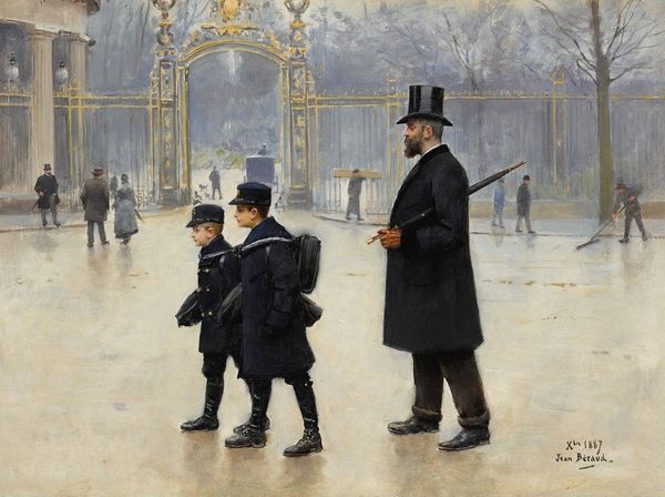 Frants Henningsen painted "A Funeral" with oil on canvas. The work illustrates a funeral procession in late 19th-century Denmark, capturing not only the solemnity of the occasion but also the social fabric of the time. The stark, snowy landscape and the attire of the mourners reflect the somber mood, but they also speak volumes about the societal norms. Henningsen's attention to detail in depicting the clothing and expressions of the figures invites us to consider their social class and roles within the community. The painting subtly critiques the rigid social hierarchy of the time, hinting at the disparities and inequalities prevalent in Danish society. The scene may be read as a self-conscious, progressive commentary on the structures of grief and mourning, as well as the institutions that shape our understanding of death. To fully appreciate this work, one might delve into the social history of Denmark, exploring the religious, economic, and political forces that influenced Henningsen's artistic vision.