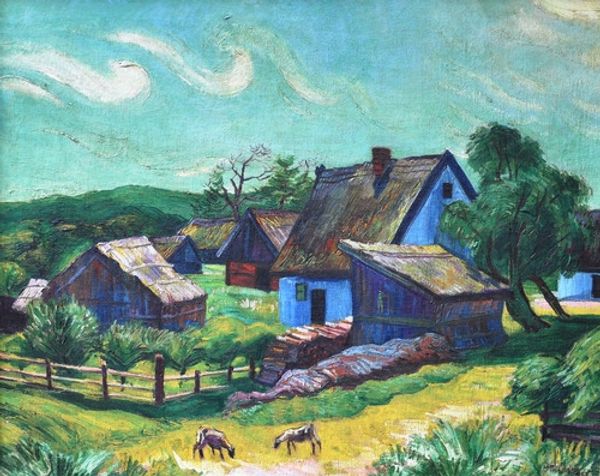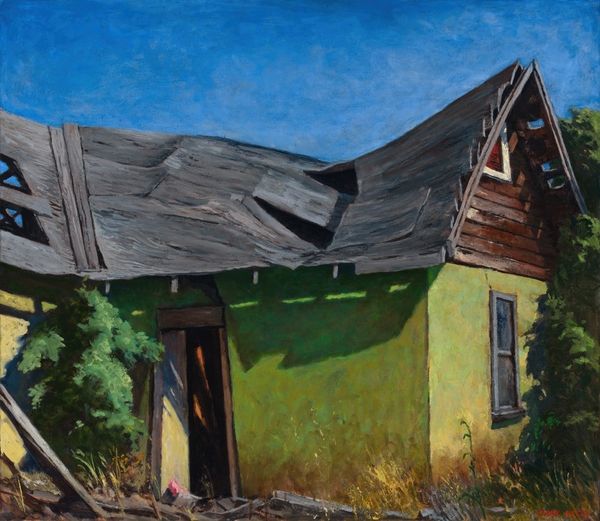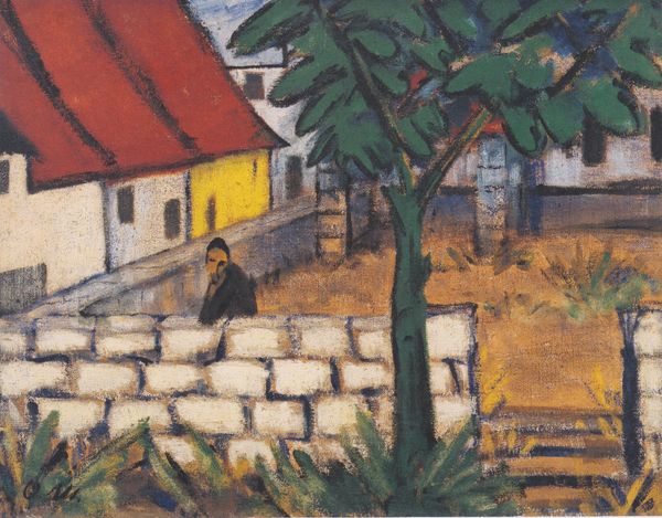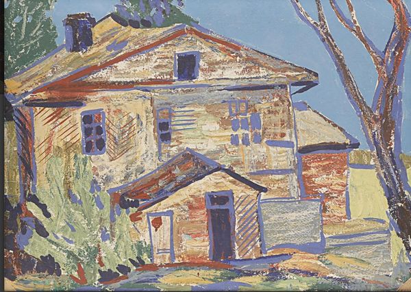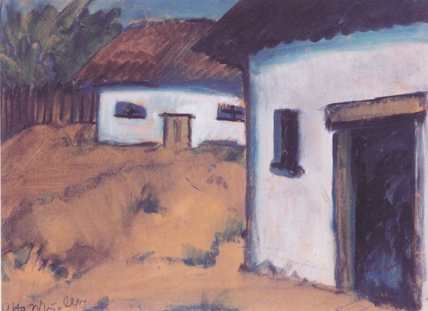 Curator: Here we have Karl Wiener’s “Küchenhaus Hundsdorf,” dating to around 1925, rendered in colored pencil. What's your first take on it? Editor: The sun-drenched hues create an immediate impression of rustic tranquility. There's an intimacy to the scene—it feels like a personal refuge rendered in warm tones, yet tinged with an awareness of isolation. Curator: The choice of colored pencil, rather than paint, speaks volumes. There’s a tactile immediacy. I'm interested in how Wiener depicts everyday architecture—a vernacular structure rendered with such deliberate artistic choices. How does this subject position itself within the historical context? Editor: Considering Wiener's Jewish heritage and the rise of exclusionary politics in the interwar period, such idyllic imagery offers a lens to interpret this artwork as a potential form of resistance or escapism. It perhaps served as an act of claiming space, tradition, and beauty against an encroaching environment of persecution. What materials draw your attention? Curator: Absolutely the layers of colored pencil. Notice the roughness of the paper texture coming through, juxtaposed against the smooth gradations of light and shadow on the building's facade. There's a visible trace of the artist’s hand in the act of creation. The medium serves the dual role of both portraying and critiquing idealized rustic life as material and visual experience. Editor: I see it resonating with early twentieth-century anxieties. While seemingly idyllic on the surface, consider the implications of longing for an uncomplicated existence. How might that interact with, or react against, the sweeping political changes happening at the time? Are we invited to escape into nostalgia, or contemplate our role within rapidly shifting societal landscapes? Curator: It invites an awareness of artistic processes as a vehicle for experiencing cultural conditions. By foregrounding the deliberate construction of the image through layered pencils, Wiener lays bare a consciousness of place, belonging, and memory itself as a constructed commodity. Editor: Perhaps such detailed rendering allowed for maintaining the artist's identity during times of conflict. Curator: Exactly. Through his medium and attention to production and construction, Wiener made the invisible visible. Editor: In viewing "Küchenhaus Hundsdorf", we aren't just observing an image; we are engaging with a dialogue between the artist, his time, and our own interpretation. Curator: I agree; thinking about the artist's labor really changes how we interpret his emotional investment.