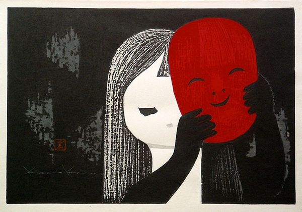 Kaoru Kawano made this print, called Fan, using woodblocks to build up the image through layers of colour and texture. The flat planes of colour sit together in a way that feels both modern and ancient, it's like looking at a digital image made with hand tools. I love the way the grain of the woodblock gives the background a sense of depth and movement, it makes me think of wind or water, and how this contrasts with the flatness of the girl's face and hair. The fan itself is a masterpiece of abstraction, the triangles and squares of colour suggesting form without being literal. It is as though Kawano is reminding us that the world is not made of perfect forms, but a collection of textures and colours that shift and change depending on how we look at them. There's something about this piece that reminds me of Matisse, the way he used colour and pattern to create a sense of depth and space. And, like Matisse, Kawano seems to be suggesting that art is not about representing the world, but about creating a new one.