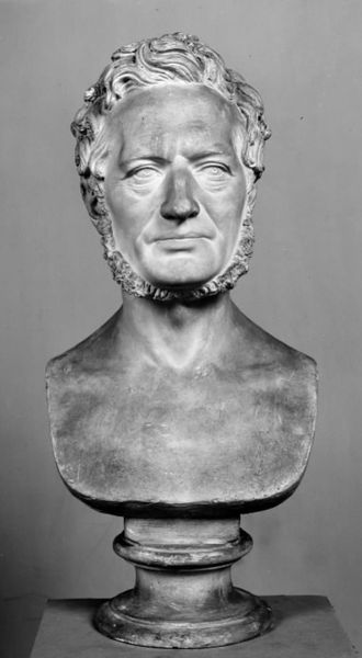 Editor: So, this is a marble bust titled "Ida Wilde, f. Thiele," created by H.W. Bissen in 1863. It has a strikingly serene and classical feel. The woman's gaze is very direct, even though her eyes are blank. What stands out to you when you look at it? Curator: The stillness is key, isn't it? This lack of expression directs our attention, not towards a specific emotion, but toward a broader ideal. This idealized image of womanhood references classical antiquity while representing a specific person. Do you notice anything familiar in the visual language? Editor: Yes, the drapery over her shoulder, for example, feels very Roman, like a toga. The simple hairstyle too. Curator: Exactly. Consider then the power of Neoclassicism: the values it evokes and attempts to instill by reviving past traditions. It suggests ideals of virtue, beauty, and order, embedding social ideals within this portrait of Ida Wilde. Who do you imagine she was meant to be, seeing her portrayed this way? Editor: I see her now less as an individual and more as a representation, someone elevated to embody particular virtues admired at the time. Sort of setting her apart from the everyday. Curator: Precisely. The symbolism elevates the sitter and embeds her within a cultural memory, continually revitalizing these values for future generations. In this way, she is not just Ida Wilde, but an embodiment of timeless ideals, reborn in marble. Editor: It’s interesting how the absence of color and specific detail helps to create that sense of timelessness. I appreciate the chance to delve deeper into the cultural implications here. Curator: Indeed. Art helps us access these deeper wells of cultural meaning and shared understanding, through a variety of symbols. That’s why history of symbols matter.