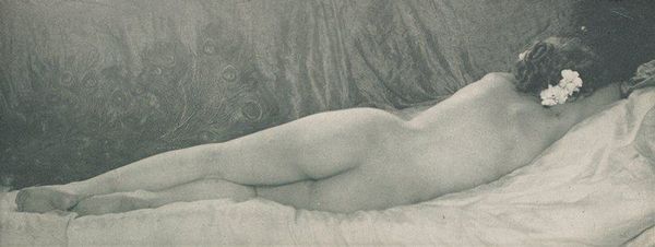 Editor: So, this gelatin-silver print from around 1887-1891, "[Female Nude from the Back]" by Thomas Eakins. It's… striking. It feels so matter-of-fact, almost scientific. There’s a strong emphasis on the realism, the form… But why a photograph instead of a painting? How does that shift the interpretation of the nude? Curator: Excellent question. Photography offered Eakins, and the Realist movement in general, a new tool to represent the world with what appeared to be unmediated accuracy. Think about the academic art world at the time – highly structured, with its own power dynamics. Eakins photographing nudes challenged those norms, presenting the human body in a less idealized, perhaps more democratic way. Do you notice anything else about the space, beyond the figure herself? Editor: There’s a vague figure in the background, some dark paneling. The studio setting feels deliberate, less like a sensual boudoir, more like a laboratory. Was this a rejection of classical depictions of the female nude? Curator: Precisely. It was, in many ways, a move to democratize art by injecting a dose of reality and science into the long-held tradition of academic painting. This shift can also be interpreted through lens of power: who gets to represent the nude and for what purpose? Was Eakins empowering or exploiting his models by emphasizing realism? Consider, also, the public reaction; how did his choice of medium impact the reception of his art? Editor: So the choice of photography and realism can be interpreted as both an artistic statement and a socio-political one, impacting his own career and the broader reception of art. Thank you; that makes a lot of sense. Curator: Exactly. Considering the social context illuminates the multifaceted layers inherent in such works.