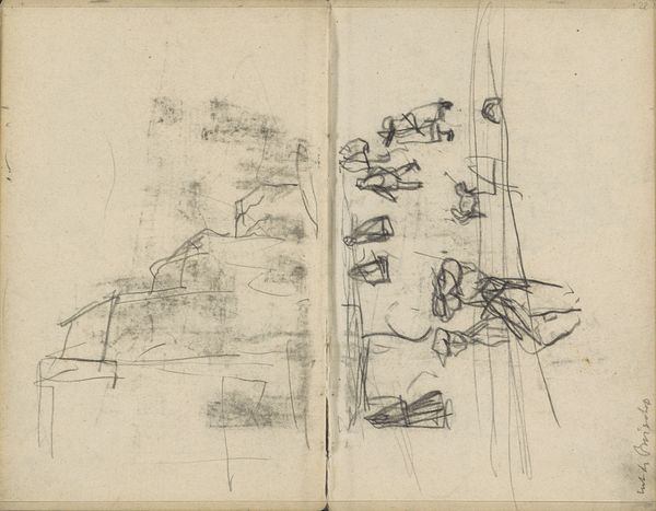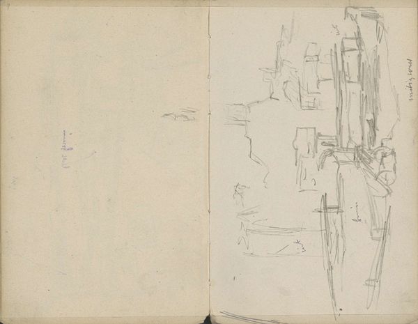 This is "Gezicht in Amsterdam" – View of Amsterdam - an undated pencil sketch by George Hendrik Breitner. The sketch itself is utilitarian; a casual arrangement of lines on paper meant only to capture a fleeting impression. But consider this – the availability of sketchbooks like this was linked to the rise of industrial paper production. The repetitive, linear marks are directly related to the availability of graphite pencils, a relatively new technology at the time. Before mass production, artists often had to mix their own drawing media, a time-consuming and skilled process. Now, the artist could readily purchase a tool that allowed for quick, portable, and relatively clean mark-making. This allowed for a new kind of artistic spontaneity. The sketch is raw and immediate, reflecting an era in which industrialization changed the very texture of daily life. In this drawing, we find not just a view of Amsterdam, but a view *on* Amsterdam, seen through the lens of new materials, faster methods, and a changing society.