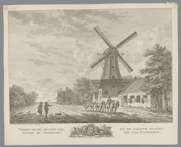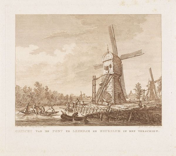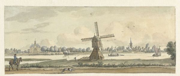 This anonymous drawing shows a scene in Leerdam, likely made in the late 18th or early 19th century. It depicts windmills and a ferry, offering a glimpse into the economic and social landscape of the Netherlands during that era. Water transport was crucial in this period, especially in a country known for its extensive waterways. Windmills, prominent in the image, were not just picturesque but essential for drainage and industry. They symbolize Dutch ingenuity in harnessing natural resources, and were often the property of wealthy citizens who made money from the labor of others. This image invites us to consider how art reflects and shapes our understanding of the past. By researching historical records, economic data, and other visual sources, we can better grasp the complex interplay of social structures and artistic expression. Art, in this sense, becomes a window into a specific time and place.