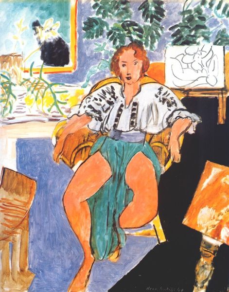 Henri Matisse painted "Gray Dress with Violet Stripes" with oil on canvas. The marks are bold, and the colours are high-key, but they are not really descriptive. It’s like he's inviting us to see the world in a new way, through his eyes. The materiality of this work is so present, with the visible brushstrokes and the way the paint sits on the canvas. See how the orange stripes curve around the woman's dress, they’re not just lines, but gestures. And those vertical lines behind her are super alive, not just flat ornamentation. They kind of vibrate. Matisse is in conversation with artists like Cezanne, who was also obsessed with the structure, and how you can build form from just colour, but with that Matisse brings so much joy. For Matisse, and I agree, painting is a place for experimentation, for not knowing, and for embracing the unexpected.