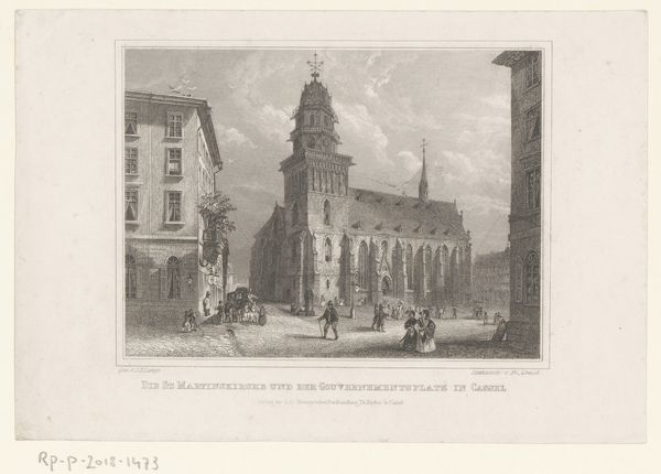 Curator: What strikes me first is the almost dreamlike quality given to a London street scene through the fine detail of this etching. Editor: And what a street! This is “View of the Royal Exchange, London,” made after 1838 by John Woods, a printed rendering of the late Royal Exchange on Cornhill. Curator: Right, there’s something very precise and even quaint about the way the artist has captured the hustle and bustle. It feels very different from a photograph. More…selective, perhaps. Editor: Indeed. In terms of its historical context, let’s consider the Royal Exchange’s role as a marketplace for global trade, deeply intertwined with Britain’s colonial past. It literally showcases a nexus of wealth accumulation. This piece raises important questions about representation, about who gets to be seen and how. The engraving seems almost celebratory, but let’s think about the stories left out, about who’s benefitting from this financial center. Curator: That’s such an interesting point. It made me think, how Woods created depth in what is such a detailed and very controlled technique—creating shadow by densely working an area, and using space in other areas. What’s there is incredibly intentional. It does invite speculation as to what else could have been depicted! Editor: Right? Whose labor built those buildings? Whose ships brought goods to be traded there? Whose land and resources made it possible? This scene exudes prosperity but the etching medium creates a very delicate impression. A prosperity that history suggests, like a thin sheet of paper, can tear very easily for many involved in its accumulation. Curator: The tower almost piercing the clouds really gives this that sense of the architecture aspiring to something beyond itself, whether earthly or divine. What I really adore are the small details of life captured; look at those people milling about the foreground as though captured at a candid, rather than staged, moment. Editor: Yes, and how do we interpret their placement? There’s certainly an argument to be made for how the arrangement of figures relates to visibility and power, suggesting the public spectacle of finance reinforces very specific social and economic hierarchies. Curator: A print like this is a document of a particular way of seeing, literally and ideologically. What it reveals about that time, and about our own ways of looking at it now is quite thought provoking. Editor: Absolutely. And how we, now, can question our own position in relation to the structures of power depicted within.