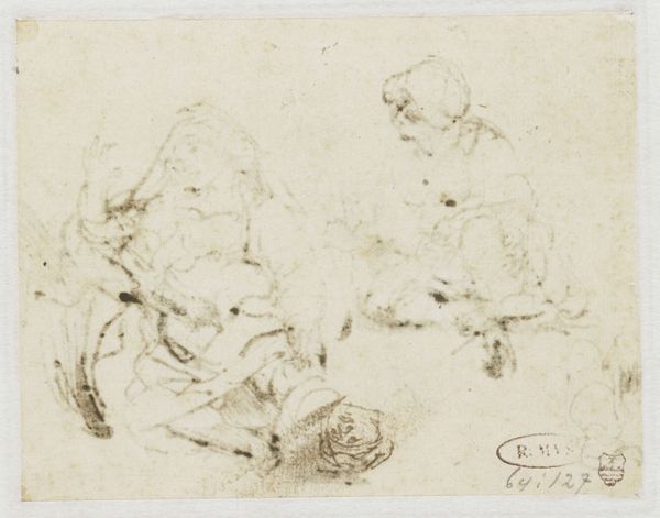 Curator: Let's consider "Marguerite Gerard Reading to Her Mother and Rosalie Fragonard," a work from around 1785 currently residing at The Art Institute of Chicago. This piece combines graphite, ink, and chalk on paper. What are your initial impressions? Editor: My eye is immediately drawn to the tonal unity. The limited palette really emphasizes the delicate play of light and shadow, creating an intimate, almost hushed atmosphere. The composition, too, with the figures clustered together, reinforces this feeling of closeness. Curator: Absolutely. Now, think about the social context. Gerard was deeply embedded in the Fragonard household; in fact, she later married Fragonard's cousin. Her access to these intimate family moments, her role as a studio assistant—all this shaped her perspective and the very creation of works like these. What materials were available, who supplied them, how Gerard positioned herself within this economy... Editor: And visually, consider the elegance in the line work, achieved through the combination of graphite, chalk and ink! The curves of the women's dresses, the detailed rendering of the eldest woman's face - notice how the artist uses hatching and cross-hatching to model form and suggest texture. There’s a structural harmony at play, a visual counterpoint between the detailed and the more loosely sketched areas. Curator: Precisely. Moreover, remember that prints were crucial for circulating images in the 18th century. The printmaking industry provided job and profit. By creating this work with graphite, ink, and chalk on paper, which would've then likely served as a study for prints, Gerard participated directly in this booming sector and found autonomy within that landscape. Editor: The expressions captured too; look at the gentle amusement on the faces of the girl and the mother, juxtaposed with the reader's focus. These subtleties evoke the sentimental narrative favored during the Rococo period. It speaks volumes about how she positions women within intellectual and domestic spaces. Curator: In essence, "Marguerite Gerard Reading to Her Mother and Rosalie Fragonard" speaks not just of aesthetic values but also reflects on broader questions about who makes art, for whom, and within what societal and material constraints. Editor: It’s remarkable how a seemingly simple composition opens up avenues for dissecting form, analyzing brushwork, and diving into thematic undercurrents. A complete art history experience.