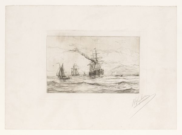This is an illustration, likely a wood engraving, which served as the title image for H. Drachmann's book, "Peder Todenskjold." The image depicts a naval battle, reflecting the heroic narratives often associated with historical figures. Considering the context, this image likely comes from late 19th-century Denmark, a period of rising nationalism and a focus on establishing a Danish cultural identity. Drachmann's book would have contributed to this movement by glorifying a Danish naval hero. The visual codes here, the dramatic clash of ships, the billowing smoke, all reinforce a sense of national pride and military prowess. The image would have resonated with a public eager to embrace symbols of national strength. Understanding such an image requires diving into the cultural and political landscape of the time. Exploring the history of Danish nationalism, the role of literature in shaping public opinion, and the ways in which historical figures were mythologized can all give us a richer understanding of this artwork. It reminds us that art is always intertwined with the social and institutional forces that shape its creation and reception.