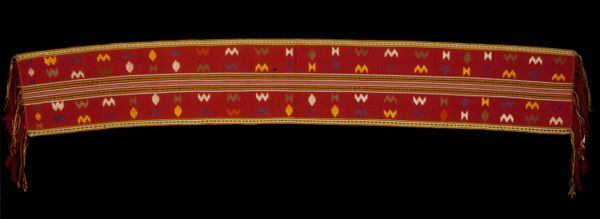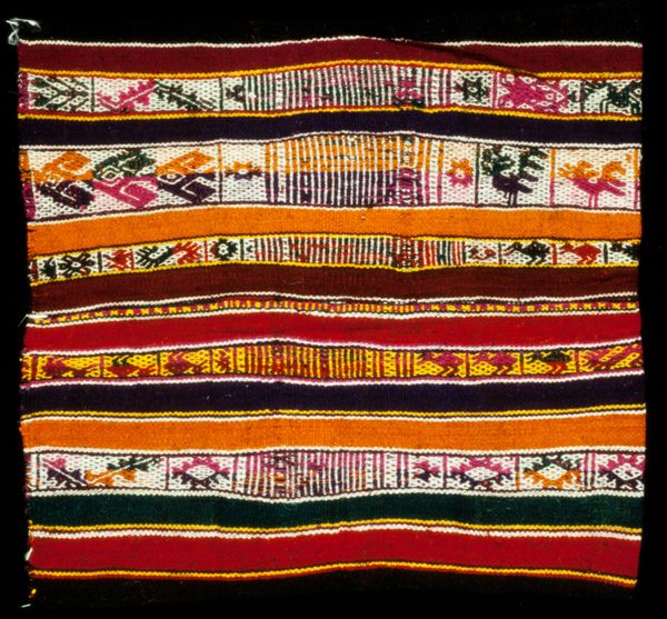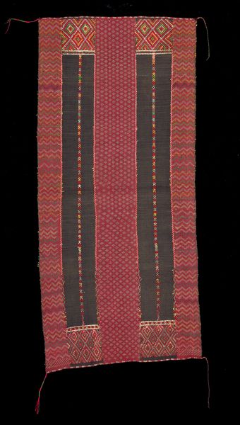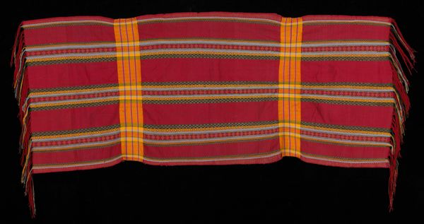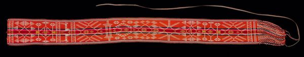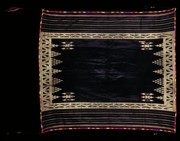 Curator: This intriguing textile artwork is simply titled "Rug." Woven from wool around 1930 by an artist of the Navajo, or Diné, people, it now resides here at the Minneapolis Institute of Art. Editor: Right away, I'm struck by this gorgeous balancing act the artist performs with those graphic elements. The piece feels simultaneously grounded and somehow… flying. It's like a visual spell. Curator: Indeed. The dynamism is largely achieved through its strong geometry. Note the central, almost cruciform design intersected by that ascending, stepped motif on the right. We also have a sort of bilateral symmetry. How might semiotics allow us to interpret these forms? Editor: Well, for me, it's intuitive. That central form feels very much like an ancestral figure, standing with open arms. The ladder to the side calls to mind reaching for something greater than oneself. And the various totemic creatures dancing around just amplify the otherworldly vibe. It all just sings with story. Curator: It's a fascinating proposition. And I believe, despite this apparent narrative reading, the true power might be its ingenious employment of abstraction, of how certain Indigenous artisans distilled forms. Editor: I get what you mean, I just don't know that I necessarily *agree*. It transcends formalism into some higher order. This work possesses something vital – a heartbeat that defies easy reduction. It whispers secrets that visual analysis alone simply can't access. Curator: An evocative sentiment, and something perhaps unique to our experience viewing this extraordinary Navajo textile. Editor: Agreed. It makes you want to unearth some long-dormant aspect of yourself, a latent connection to all of our origins.