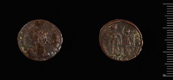 Editor: Here we have a Roman coin of Constantius II. It's small, humble even, but I feel like it has an enormous story to tell. What leaps out at you? Curator: It whispers tales of power, doesn't it? Think of all the hands it passed through, each transaction a tiny ripple in the grand flow of history. Editor: Absolutely! I hadn't considered that. The coin itself is a story. Curator: Exactly. It's a pocket-sized echo of an empire, inviting us to ponder what endures and what fades. Editor: So true. I'll never look at old money the same way again!
