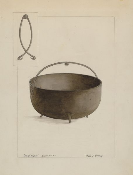 Violet Hartenstein created this watercolor and graphite on paper, titled “Dutch Bake Oven.” Hartenstein, born in 1885, lived through a period of immense change in America, marked by industrialization and shifting social roles. Her artistic focus on domestic objects reflects a broader cultural narrative about gender and labor. These bake ovens were essential tools, and were also symbolic of women's work and domesticity. By depicting the oven in isolation, Hartenstein prompts us to consider its significance beyond its practical function. The rough texture and simple form of the oven are rendered with a careful attention, suggesting both the labor and the intimacy involved in traditional cooking. This artwork encourages us to consider the intersection of gender, labor, and domesticity, inviting us to reflect on the often-overlooked contributions of women in shaping our society.