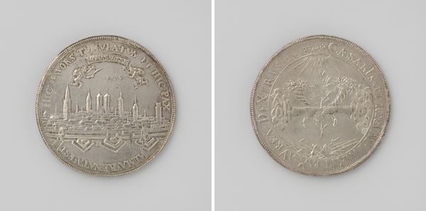 Curator: So, here we have a metal engraving by Nicolaas van Swinderen, made in 1751, titled "Inhuldiging van Willem IV als markies van Vlissingen en Veere." The craftsmanship is remarkable. Editor: Yes, it is stunning, especially considering its small scale. The details of the building and the crowd are quite intricate. It feels very formal and official. How do you interpret its significance? Curator: From a historical perspective, this piece encapsulates a specific moment of political theater. Willem IV's inauguration was a public spectacle carefully orchestrated to solidify his authority. How do you see the layout? It's like a theater set, right? What does this arrangement imply about the event's function? Editor: Definitely! The buildings feel like stage wings framing the crowd and Willem IV. This emphasizes the ceremonial aspect, almost like he's performing for the city. So, it is more than just about him; it's also a performance for his citizens, in a specific urban and historical setting. Curator: Precisely. These formal events like this one shaped the Dutch collective memory and reinforced social hierarchies. The location of the inauguration in Vlissingen and Veere further highlights their economic and strategic importance. Think about how this image might have been distributed and consumed, furthering the political agenda. Editor: It’s amazing to think about how something so small could have such a big impact on solidifying political power. I'm struck by the connection between this single event, its visual representation, and broader cultural narratives. Thank you! Curator: Indeed. Recognizing that relationship helps us decipher how societies construct and preserve power through public events and visual imagery. I learned a lot as well by looking at the stage setting.