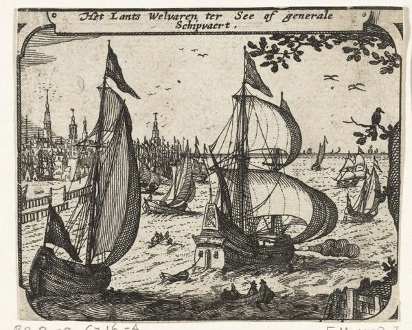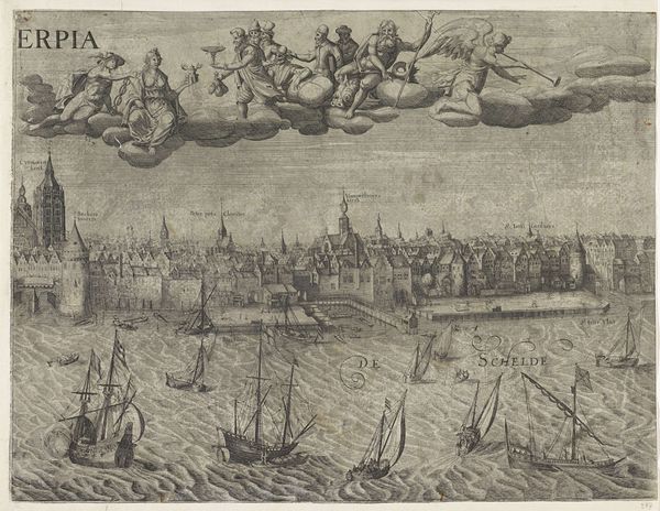 Editor: This cityscape, “Antwerpen van de Schelde te zien, linker middenblad,” is an engraving, ink, and drawing by an anonymous artist made sometime between 1617 and 1667. The image shows Antwerp from the river Schelde. The overwhelming number of ships makes me think of the city’s importance as a trade center, but I wonder, what else do you see in this piece? Curator: I'm immediately drawn to the intense labor embedded in this print’s production. The creation of this detailed cityscape demanded meticulous craftsmanship – think about the physical act of carving those fine lines into the printing plate. Furthermore, the depiction of numerous ships isn't merely representational. They point directly to the engine of Antwerp’s 17th-century economic power and reflect a vast network of human and material exchange. Editor: So you're saying the image itself is almost a record of its own making and the city's industry? Curator: Precisely. Consider the paper it's printed on as well – its source, manufacture, and eventual consumption all speak to the economic currents of the time. The ink, the printing press, and the distribution networks—all were commodities integral to Antwerp's rise as a commercial hub. How might its consumers have engaged with such imagery? Editor: I guess it served as a kind of advertisement or even propaganda. A way to promote Antwerp's success and attract even more merchants and investment. Curator: Absolutely. And remember, printed images were also accessible to a wider audience compared to paintings. This print offers a valuable lens through which to view the city's self-representation and its relationship to global trade and power dynamics of the time. Did Antwerp citizens share this perspective, do you think? Editor: This gives me so much to consider about the cultural and economic impact surrounding something we might just consider a pretty picture. I had not considered the socioeconomic impacts that made such prints possible. Thank you. Curator: The beauty, in many ways, is just the surface. It's uncovering these material layers that provides richer context to this print.