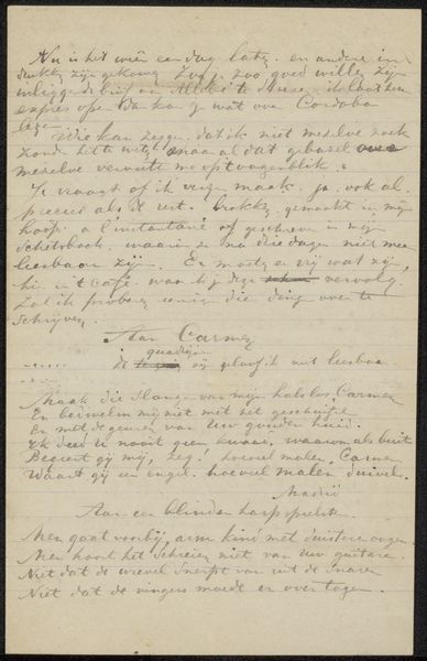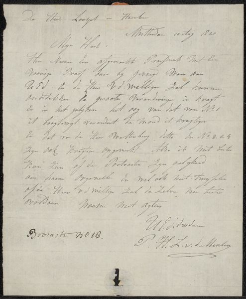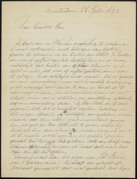 Curator: This appears to be a letter, titled "Brief aan Philip Zilcken," likely from 1920. It's an ink drawing on paper. What strikes you first about it? Editor: The script itself, how personal it feels. Knowing it's addressed to someone makes it even more intimate. But beyond that, I'm wondering what someone would write that feels so historically significant to be in a collection? Curator: Good question. Consider the time period. This is just after the First World War, a period of immense social and political upheaval. Letters at this time acted as communication devices that were critical to cultural life. To whom was this letter written? What might their role have been in society at this moment? What might it mean for an institution to hold these documents now? Editor: Okay, I see what you mean. It isn’t just about the content, but who is speaking and how their relationship reflected larger societal happenings. So holding onto something so intimate can signal significance beyond just personal connection. Curator: Precisely. The role of galleries is so important in constructing historical narratives. How does keeping things that appear "normal," such as letters, within collections inform narratives, especially from less represented groups? Editor: I’d never thought of something as quotidian as a letter as potentially being a form of record keeping, making it something museums should catalogue and display! Curator: Exactly! It can influence how we consider the past and those who lived through it. Hopefully now we both think differently about this.