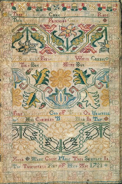 This sampler was created by Abigail Ridgway in 1795, using linen and silk thread. These materials are far from esoteric, but their transformation through embroidery is what gives the artwork its power. Consider the inherent qualities of the materials: the humble linen providing a sturdy ground, and the silk, dyed in various colors, used to build up the design, stitch by painstaking stitch. Look closely at the composition – the alphabet, numerals, stylized floral motifs, and animals. Each element meticulously rendered with cross-stitches, satin stitches, and other traditional needlework techniques. Embroidery was a common skill for young women during this time. Needlework was both a practical skill and a demonstration of refinement and patience, valued attributes in a woman. This piece represents hours, if not days, of labor and patience. Its cultural significance lies in its demonstration of domestic virtue. It reflects wider social issues of gender roles and expectations. So, while the materials may seem simple, it’s the making, and the context, that truly reveal the richness and complexity of this artwork.