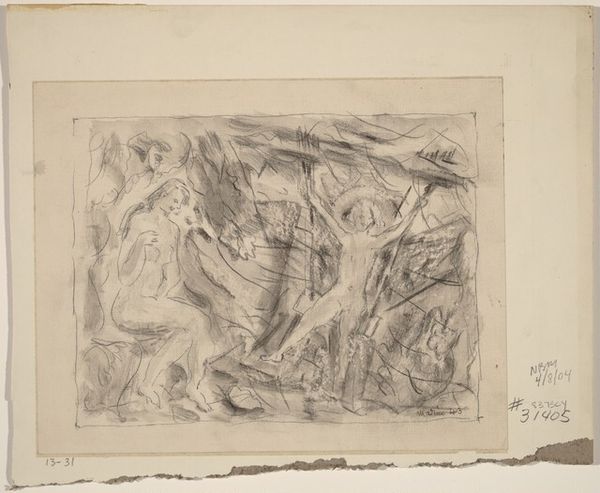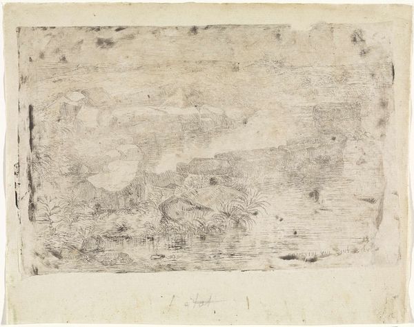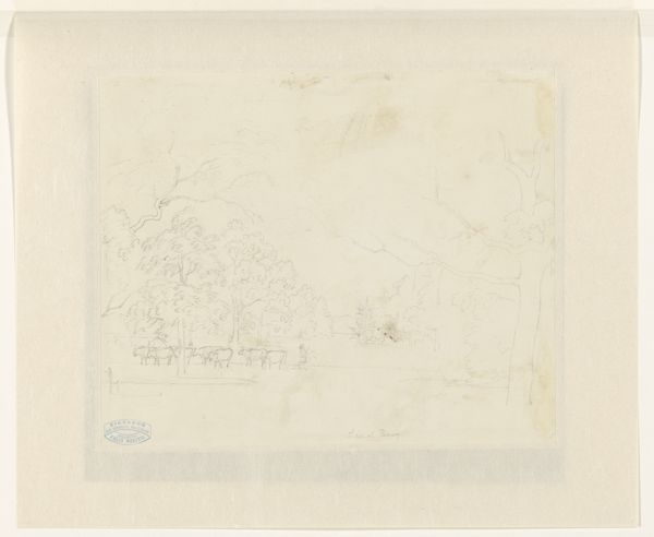 Johannes Tavenraat created this drawing, "Vier lopende herten," with pen in brown and gray, and brush in gray. The composition presents a dynamic yet somewhat hazy scene. The texture of the paper and the delicate strokes of the pen create a sense of movement and immediacy. The light is diffused, giving the whole scene an ethereal quality. The arrangement of the deer in the foreground, all heading toward the left, creates a sense of urgency. The background is less defined, allowing the viewer's eye to focus on the animals. The sketchy lines suggest an environment that is both natural and somewhat dreamlike. Tavenraat destabilizes the traditional landscape by focusing on movement and transience rather than static representation. This drawing uses a semiotic language where the deer become symbols of nature and freedom, challenging the established meanings of landscape art. The formal qualities of the artwork invite us to see nature not as a fixed entity but as a fluid and ever-changing spectacle.