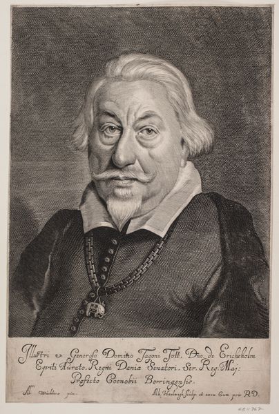 This portrait of Tage Thott was made by Albert Haelwegh, using engraving, sometime in the 17th century. The process begins with a metal plate, usually copper, into which the image is cut. The engraver uses a tool called a burin to incise lines directly into the plate. The burin is pushed through the metal, creating clean, precise lines. The depth and thickness of these lines determine how much ink they hold, thus controlling the tonal range of the print. The engraved plate is then inked, and the surface wiped clean, leaving ink only in the incised lines. Finally, the plate is pressed onto a sheet of paper, transferring the ink and creating the print. The sharp detail achievable through engraving lends itself well to portraiture and the depiction of fine textures, like Thott's elaborate chain. The resulting image is not just a likeness, but also an index of the engraver’s skill, and the sitter’s social standing. Appreciating the craft of engraving helps us see these prints not just as images, but as products of skilled labor, embedded in a specific historical and economic context.