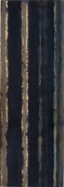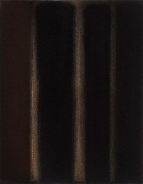 Editor: Yun Hyong-keun's "Burnt Umber and Ultramarine" from 1973—it's quite striking! At first glance, it feels very solemn, almost like standing before a series of dark monoliths. How would you interpret the visual weight of these forms? Curator: It is compelling, isn't it? Note the interplay between the "burnt umber" and "ultramarine". Consider how umber, earth-toned, grounds us in the corporeal, against ultramarine, which since antiquity signified transcendence. Do you think it's a contradiction, or could it be a balance of forces? Editor: A balance... I see what you mean! The vertical lines, even with their blurred edges, do feel like they're reaching upward, despite the heaviness of the colors. It’s like earth aspiring to something more. Curator: Precisely! And what does that reaching imply? Reflect upon Korean art traditions; there's often a sense of harmony sought between nature and humanity. Yun, even amidst the political turmoil of his time, seemed to search for that continuity through abstracted forms. What do you suppose that search represents? Editor: Maybe a hope for stability, a return to some kind of natural order in a chaotic world? It makes me consider the psychological impact of living through those periods. Curator: Yes. Art serves as both reflection and cultural memory, doesn't it? The simplicity, too, is telling—stripping down to essentials when the world feels overwhelming. How does that influence our own experience looking at it today, removed from its original context? Editor: That’s a really interesting way to look at it. I originally saw starkness, but now I notice something more hopeful, something enduring in its simplicity. Curator: And that’s how symbols evolve—their meaning shifts and deepens through the ages, inviting new conversations with each viewer.