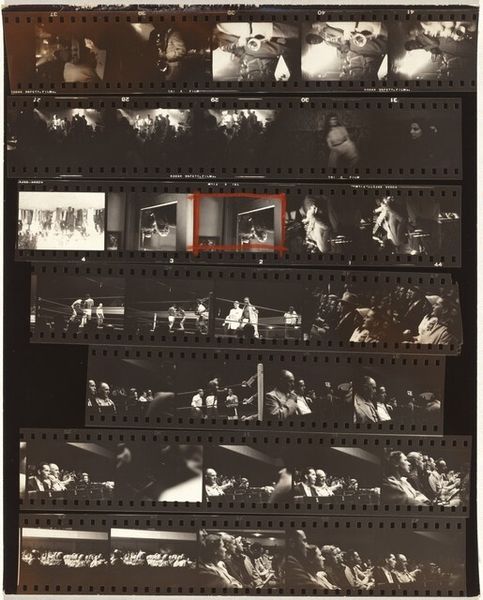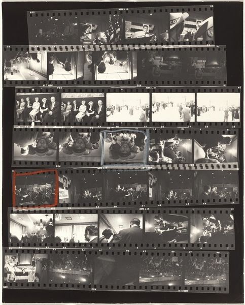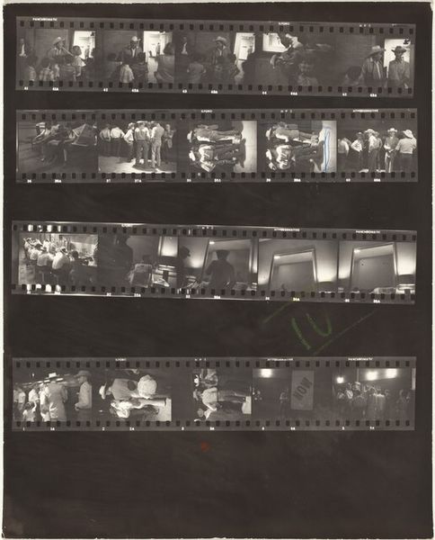 This is Robert Frank's "Hollywood 72", a photo collage made with black and white film. It's a bit like a storyboard, or maybe even a film strip laid bare. You get the sense of a sequence, an event unfolding, but without a clear narrative. The grainy texture and the way the images are laid out, slightly overlapping, gives it a raw, almost diaristic feel. It reminds me of when I work on a canvas, building up layers, scratching back, revealing and concealing. There’s one frame where a figure turns their head, catching the light, and it disrupts the flow of the image. It's kind of like a painterly gesture, a moment of disruption that keeps the eye moving. Frank was always playing with this tension between capturing reality and injecting his own subjective experience. Think of someone like Gerhard Richter, who also blurred those lines between photography and painting. It’s this constant pushing and pulling that makes art so endlessly fascinating, isn't it?
