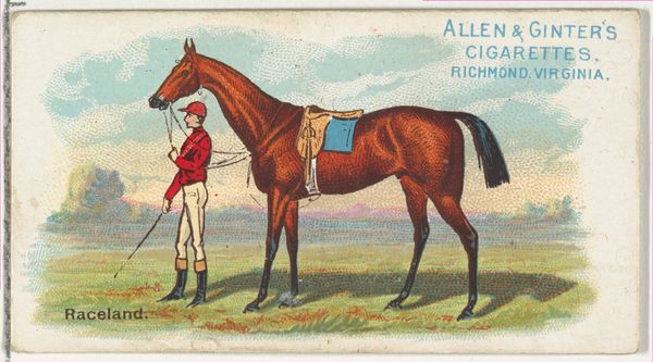 This small chromolithograph was produced by Allen & Ginter, a Richmond, Virginia, tobacco company, as part of a series of collectible cards inserted into cigarette packs. These cards, dating back to the late 19th century, offered consumers something extra, and provide today's viewers with an interesting insight into the cultural values of the period. Here, Aurelia, a racehorse, stands in profile with its jockey on its back. The format resembles equestrian portraiture, a genre with aristocratic associations. But instead of a painting commissioned by a wealthy horse owner, we have an inexpensive, mass-produced card, designed to appeal to a broad public. Horse racing was then becoming a popular spectator sport, cutting across class lines. So these cards served as advertisements, and as a way to connect the brand of cigarettes with cultural values like leisure, sport, and status. To properly understand this image, we can research the history of tobacco companies, consumer culture, and the popularization of sports in America. By examining the intersection of these social and institutional forces, we can better understand the meaning of this small, but telling, cultural artifact.
