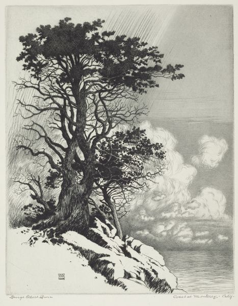 This is Stephen Izant's "Protest", an etching rendered in monochrome that captures a stark winter scene. The composition immediately draws us to a raven perched on a snow-laden branch, wings spread and beak open in what seems like a cry. The artist uses line and form to create a contrast between the detailed foreground and the softer, more blurred background. The intricate lines of the bare tree branches against the smooth snow create a visual rhythm. The starkness of the winter setting, combined with the raven's vocal stance, might be interpreted as a challenge to the silence and stillness often associated with winter. The use of monochrome strips away the distraction of color, focusing our attention on the essential forms and the raw emotional expression of the bird. Izant's etching technique, with its emphasis on line and texture, enhances the sense of immediacy and rawness, compelling us to consider the raven's protest not just as a visual element but as a signifier of deeper, perhaps societal, unrest.
