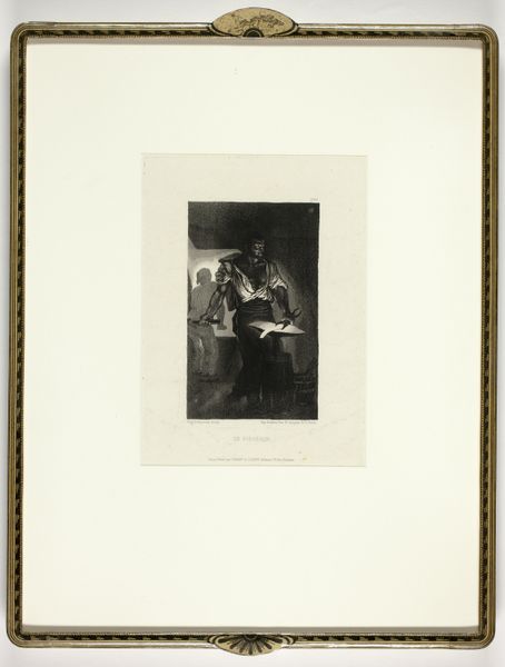 Editor: Here we have Charles Heath the elder's engraving, "Prince Henry and Falstaff at the Boar's Head Tavern," created around 1825 or 1826. The scene, pulled from Shakespeare's Henry IV, Part 1, looks chaotic and performative to me. What draws your eye in this image? Curator: What I notice first is the way Falstaff, at the center, stages himself. He wields that sword and shield with theatrical exaggeration. He's not just telling a story; he's re-enacting a memory. The artist wants to connect to something deeper. Consider the Boar's Head Tavern itself – for its audiences, it would have conjured immediate, powerful, nostalgic associations. Why do you think the artist chose this specific scene? Editor: Maybe because it's such a memorable moment in the play? Falstaff's larger-than-life personality and the youthful Prince Hal together in this disreputable setting... Curator: Precisely. Heath capitalizes on pre-existing cultural memory. It’s not simply illustration; it's cultural shorthand. He presumes the viewer recognizes the layered meanings, the contrast between the future king and his roguish companion. That recognition then creates a kind of social bond – a shared understanding of English history and literature. Note how everyone is a type rather than a realistic individual. Are there similar characters who inhabit modern popular imagination today? Editor: I can see that! Maybe modern fictional sidekicks? The appeal of seeing someone in authority breaking from tradition, associating with rebels? Curator: It is less about the subversion, and more about exploring archetypes. That visual symbolism invites a certain recognition, like pieces of a familiar, cherished story falling into place. Consider the historical painting tradition that romanticizes the past. It suggests something timeless in these human dramas. How would people today see this engraving versus when it was created? Editor: It's a wonderful reminder of how images embed themselves in our culture, accruing layers of meaning over time. Curator: Exactly. From theatrical performance to social commentary, this work reflects and refracts the enduring power of symbols.
