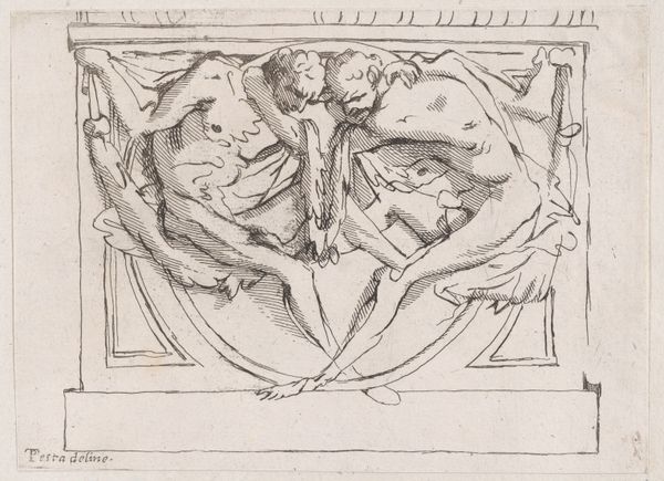 Editor: So, here we have Teresa del Po's "Trajans triumfbue. Bueslag set fra nordøst," made in 1739. It’s an engraving. My first thought is how decorative and… balanced it feels. There’s a formality to it, but also something playful. What do you see in it? Curator: I'm glad you picked up on that playful element! It reminds me of daydreaming in an architecture class. The engraving is detailed, meticulous even, and it captures the theatricality that’s so characteristic of the Baroque, that kind of, 'look at me!' flamboyance. I see a real delight in classical forms, repurposed, almost like remixing ancient history. And that arch begs a question... what kind of story is it framing? Editor: A story? I mostly see figures lounging around... almost like set dressing. But the history painting tag suggests more than simple decoration, right? Curator: Absolutely. Think of the arch as a stage. Baroque art often aimed to overwhelm, to instill a sense of awe. Now look at those reclining figures. How do they speak to you? Are they actors or audience members? Or perhaps even more intriguingly – the thoughts IN Trajan's own head! Editor: Actors *in* his head! Wow, that completely reframes how I see it. Instead of a static image, it’s like a captured moment of internal debate, cast in a grand style. I definitely appreciate it more seeing it that way. Curator: Isn’t it marvelous how a different perspective can turn an image inside out? Art becomes truly alive when you start questioning its silence! Editor: Definitely! It’s like unlocking a hidden chamber. Thanks for sharing that insight!