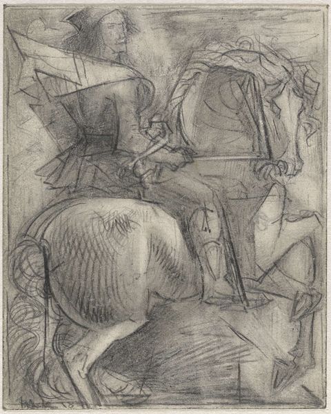 Ernst Ludwig Kirchner made this etching, Couple in Front of a Carriage, by scraping lines into a metal plate, probably sometime in the early 20th century. It's all about process, you can really feel the scratching and the hurried marks that create a sense of nervous energy. Looking closely, you can see how the lines vary in thickness and depth, creating different shades of gray and black. The overall impression is one of a fleeting moment, like a snapshot of a busy street scene. Notice in particular the wheels of the carriage. They are rendered with such energy, the circles not quite closed, the lines radiating out from the center like spokes of light. Kirchner captures the feeling of movement, the blur of the city, and the alienation of modern life. You can see a similar sensibility in the work of other expressionist artists like Edvard Munch, who also used bold lines and exaggerated forms to convey intense emotions. Art is just one big conversation, isn't it? Always has been!