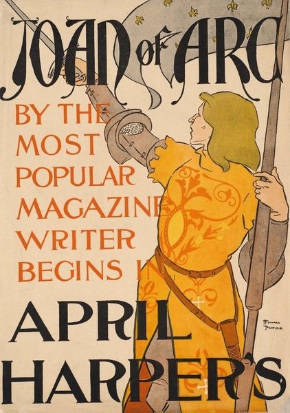 Curator: “Morning Journal” from 1900 by Louis Rhead is an absolutely stunning example of Art Nouveau poster design printed with lithography. Editor: This is fascinating! It’s striking how Rhead juxtaposes the stylized figures with the overt text promoting a newspaper. What catches your eye when you examine the composition? Curator: Indeed. The interplay of line, color, and form immediately strikes one. Notice how the curvilinear lines of the women’s gowns and the surrounding flora echo each other, creating a harmonious visual rhythm. The limited color palette – oranges, reds, blues and grays – also unifies the composition, lending it an almost iconic feel. Editor: The symmetry is hard to miss! And what do you make of that rooster, placed right in the center at the top? Is that about morning and being awake? Curator: It contributes a critical structural element; formally it is situated almost as an echo of the "M" below. Consider how it functions purely as a visual marker, drawing the eye upwards and inwards. How does that kind of placement reinforce or contradict the commercial message of the advertisement? Editor: I see what you mean. The image isn't *just* illustrative of morning but actively manipulates your gaze across the frame, emphasizing certain elements. This goes far beyond illustration to the deeper structure of how we percieve visual language. Curator: Precisely. Rhead expertly balances representation with abstract formalism, making "Morning Journal" a powerful example of art serving commerce, but also existing purely through its design. Editor: So fascinating to see how function and pure form coalesce here! I learned a lot. Thank you! Curator: A pleasure. The beauty of art lies in precisely such multi-layered readings!