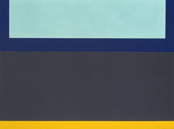 Curator: Here we have Hans Landsaat's "Bridge with Matching Cloud" from the Tate Collections, a work that invites immediate contemplation with its restrained palette. Editor: It certainly does—those cool blues are incredibly soothing, almost meditative. The simple geometric forms give it a sense of calm detachment. Curator: Bridges often signify connection, a passage between disparate points, but here it feels almost symbolic. The cloud, or is it a sky reflection, mimicking the bridge suggests a harmonious unity of earth and sky. Editor: Or perhaps the flattening denies connection? I find the simplification bordering on abstraction makes the bridge less about functionality and more about, perhaps, the idea of a bridge. A very modern perspective, I think. Curator: Indeed. The visual language pushes us toward a universal concept of 'bridge', but the lack of contextual clues makes me wonder if Landsaat intended a more personal, psychological resonance. Editor: It’s fascinating how the painting, despite its simplicity, elicits such varied interpretations about connection and separation. Curator: Precisely. A testament to the potent symbolism within seemingly minimal forms.