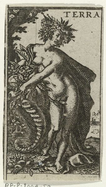 Editor: This print, "Saint Sebastian Tied to a Tree with Arrows in His Body," comes from the Italian Renaissance, placing its creation somewhere between 1500 and 1575. What strikes me is the subject's apparent stoicism, which is so at odds with the brutality of the image. How do you interpret this work? Curator: Well, first, consider the body: Saint Sebastian’s near nudity was undoubtedly provocative for its time. It was a deliberate choice to display his form even as he’s being martyred. Does that detail influence how you perceive the intended audience for the work? Think of power structures, social dynamics, perhaps the intersection of religion and societal control. Editor: That’s interesting. I hadn’t considered that his body was on display, a challenge to conventional morals through vulnerability. So this could be an exploration of power as much as faith? Curator: Precisely! The image taps into then-current discourses around religious and social constraints. Art, like this engraving, acted as a potent agent to open up dialogue regarding social doctrines by subtly challenging their foundations. The graphic representation may encourage deeper inquiries on topics of repression, conformity, and freedom of expression within cultural settings. It’s imperative to observe how his suffering connects not just religiously, but also socially in challenging established authority. Editor: I see your point! Now the piece seems less about devotion and more like a quiet act of defiance within its period’s strict conventions. Curator: Exactly! And that makes it so much more resonant, doesn’t it? Considering art and theory is an opportunity to question cultural standards by engaging art on more profound levels to illuminate issues concerning the expression, power dynamics, and the representation of human condition during times rife with cultural expectations. Editor: This fresh look at the image definitely challenges any initial reading!