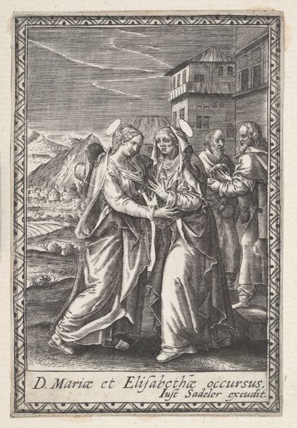 Curator: So, here we have Gaspar Huybrechts's engraving, "Christus voor Kajafas," dating back to sometime between 1661 and 1684. Editor: What strikes me immediately is the claustrophobia, even in monochrome. The density of figures, that looming architecture… it’s like the air itself is heavy with judgement. Curator: Indeed. Huybrechts is working within a very established Baroque tradition, thinking about how an image functions as a historical and religious artifact. Editor: And I am struck by what an incredible material object an engraving like this represents. Think about the labour and the technology—the paper, the ink, the press. And how this specific material form would make images accessible for private devotion outside the walls of the church. Curator: It allows the story of the passion to unfold for individual meditation. The artist really captures the psychological weight bearing down on Christ. He’s almost completely surrounded, hemmed in by anger, injustice…even that dog at the bottom seems to know something awful is about to happen. Editor: I find the artist's technical prowess especially compelling. Think about the number of actions that are implied here, all compressed together to maximize its social impact for ordinary folk. It invites engagement by showing a powerful narrative so dramatically. Curator: But it's more than just illustration. The strategic use of light and shadow, the postures, that architectural backdrop, create an emotionally charged space where belief can be not just understood, but actively felt. What lingers for me is the tension he creates with the architectural forms, as if even the space itself conspires to trap Christ. Editor: Yes, to think of it not just as an image but as a social thing, circulated among particular communities for spiritual or ideological consumption. It's fascinating. Curator: So, on reflection, I keep returning to the intimacy achieved in such a large historical scene. It is a remarkable compression of space and feeling.