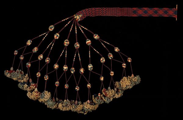 This Kanchli, or bra, shimmers with an anonymous maker's care and time. Look at the ground: a buttery yellow sprinkled with tiny red and black sprigs. The silver circles create their own rhythm, bouncing light like a disco ball, and the pink and silver trim adds a playful complexity. The fabric looks thin, suggesting a delicacy, but it's the details that catch my eye. Each stitch, each carefully placed mirror, speaks of a process, a conversation between the maker and the materials. I wonder about the story behind each tiny, joyful mark and the way the maker carefully considered the placement of each element. The choice of yellow reminds me of Hilma af Klint, a painter who, like the maker of this bra, experimented with abstract form. The yellow ground offers a space of warmth and light, inviting the silver to playfully reflect. Art, like clothing, is a process of ongoing conversation and exchange, and this beautiful bra is an invitation to look closer and to find joy in the act of making.