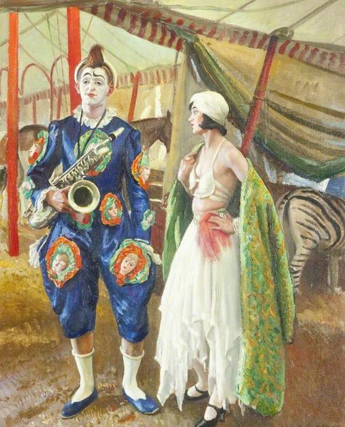 Rafael Zabaleta made "Puppeteer in the Town Square" with what looks like oil on canvas. There’s a directness to the application of paint, kind of raw, and immediate, as though the image was pulled out of the ether in one go. The textural quality is pretty striking. Zabaleta uses the brush in a way that you can really see the direction and the pressure of each stroke. Especially in the puppet master's jacket, the paint looks thick, almost sculptural, giving a real sense of depth. Then you see the blue grey legs of the puppet dancers, and the contrast with the warmer tones of the figures surrounding them. It's like Zabaleta is using color to set up different emotional registers. The way the artist’s let the brown underpainting peek through throughout the artwork, feels like a nod to artists like Goya, who used simple palettes in their paintings to create a sense of drama.