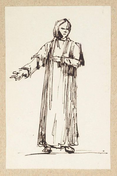 Johannes Tavenraat created this drawing, "Priest and Heads," using pen and brown ink, sometime in the 19th century. The initial impression is of a study in contrasts – the detailed figure of the priest set against a series of rapidly sketched heads. The priest is rendered with careful attention to the fall of light and shadow, while the heads around him seem more like fleeting impressions. Look closely at the composition. Tavenraat uses the priest's figure as an anchor, from which the gazes and angles of the surrounding heads diverge. This creates a dynamic tension, a visual field of relations that destabilizes a singular, fixed interpretation. The very texture of the drawing, with its jagged edges, reinforces this sense of incompleteness and open-endedness. Tavenraat's "Priest and Heads" is not just a collection of portraits, but an exploration of form, perspective, and the very act of seeing. The unfinished quality of the artwork invites us to complete the composition ourselves.