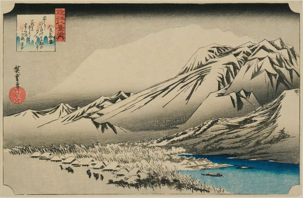 Utagawa Kunisada’s “View of Fuji from Miho Bay, May” is a woodblock print dominated by varying shades of blue, a deliberate orchestration of tonality that envelops the viewer. Mount Fuji rises ethereally in the background, a tranquil contrast to the activity in the bay. The composition’s structure relies on a stark juxtaposition: the natural, flowing lines of the landscape against the print’s intentional framing. This tension between the organic and the constructed is crucial. Kunisada plays with perspective, flattening the scene while still conveying depth through tonal shifts. The use of a limited palette serves not as a constraint but as a tool to intensify the formal elements at play. Kunisada engages with the semiotic power of landscape. The formal qualities of the artwork, such as its carefully balanced composition and restricted color scheme, serve to destabilize conventional perceptions, inviting us to consider the symbolic and cultural weight of the scene. By reinterpreting the landscape, Kunisada offers a space for continuous dialogue and reconsideration.