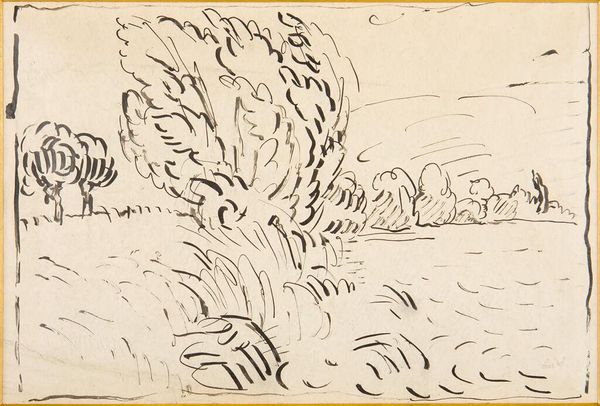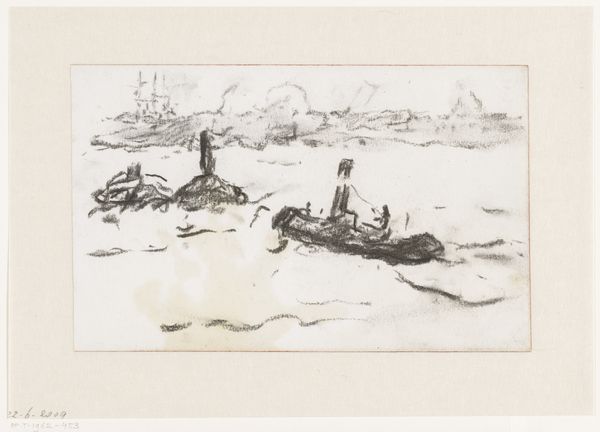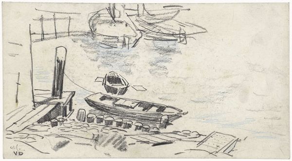 Georges Lacombe created "The Sea Off the Edge of a Boat, Brittany" using graphite on blue paper, presenting a scene dominated by linear rhythms and a monochromatic palette. The boat's edge acts as a strong diagonal, slicing through the composition and guiding our eye into the turbulent sea. Lacombe masterfully uses line to delineate the movement of water, from the gentle waves in the distance to the frothy, chaotic surf near the boat. These lines create a sense of depth and dynamism, drawing us into the experience of being at sea. Consider the structuralist approach: The sea, traditionally a symbol of the infinite, is here confined by the boat's edge, which can be seen as a signifier of human intervention and control. Yet, the wild, untamed quality of the sea resists this imposition, creating a tension that destabilizes any fixed meaning. The drawing challenges our perception of space, inviting us to contemplate the unstable boundary between the known and the unknown.
