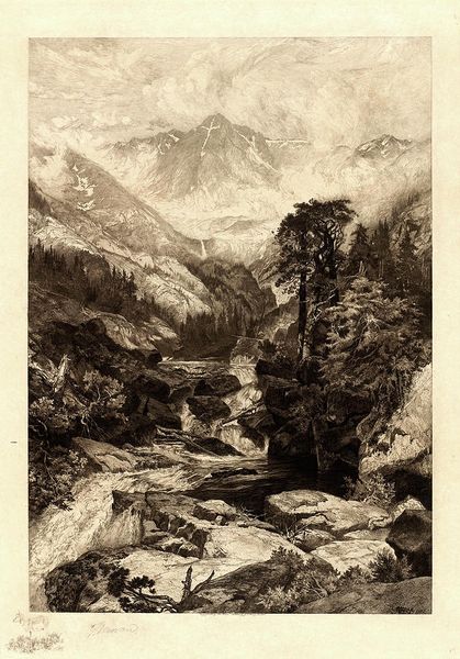 Curator: Here we have "Landscape at a Northern Italian Lake" by Werner Peiner. It appears to be rendered in ink. What are your initial thoughts on this scene? Editor: The landscape emanates a serene but somewhat melancholic air, doesn't it? The monochrome tones lend a timeless quality to this depiction, which reminds me of old landscape photography. Curator: It is interesting you note that, considering landscapes of the Italian lakes have been heavily romanticized in paintings, photographs, and early travel postcards through much of the modern era. How might the monochrome palette factor into this one? Editor: It evokes the Romantic era of the sublime and the picturesque, a familiar subject in Northern European landscape painting. There's a hint of foreboding in the clouded sky looming above the crisp depiction of the lake and mountains. The darker ink wash might symbolize a more solemn reflection upon nature’s grandeur. Curator: Peiner was active during a time of significant social upheaval. The landscape became a common ground for cultural identity and expressions of longing, particularly within movements like New Objectivity and later in post-war art. The landscape becomes less about idealizing nature and more a site of complex historical and cultural tensions. Editor: Absolutely. You can feel this complexity in the stark contrasts. It's as though the artist uses visual cues like dramatic lighting to engage with collective memory. Even the choice of ink washes to portray the architectural details of a distant lakeside house has purpose; the lake house itself is a recurring motif in Western art history, acting as both idyllic retreat and a symbol of something far less clear. Curator: It's also relevant to consider how Peiner's work intersected with political agendas of his time. Though landscapes often seem neutral, they carried ideological weight in Nazi Germany, sometimes used to reinforce nationalist sentiments. Editor: I agree; landscape art is so very rarely simply about nature itself. When we engage with a piece like this, we are seeing layer upon layer of historical context, cultural reference, and personal expression synthesized through symbolic imagery. Curator: It really opens a window into how artistic expressions often echo, and sometimes critique, the social narratives of their time. Editor: Precisely, allowing the familiar image of landscape to morph, revealing unexpected depths of cultural and historical significance.