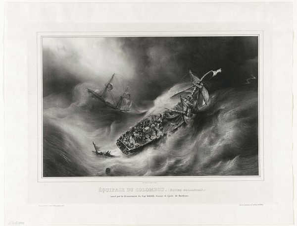 Curator: Let's consider Achille Beltrame's 1913 print, "Crash of the L 1." A rather dramatic scene. What are your initial thoughts? Editor: My immediate reaction is a visceral one. It’s ominous. The immense scale of the airship relative to the tiny figures clinging to it and the vastness of the ocean makes me uneasy. Curator: The image depicts the actual crash of the German zeppelin L 1 in the North Sea. It provides a window into early 20th-century anxieties around technological advancement and its potential for catastrophic failure. Note how it draws from tropes of the historical maritime disaster, much like the later fascination with the Titanic. Editor: I see the print primarily as an object representing the physical realities of early aviation and its risky construction. Look at the materials Beltrame used; he has very effectively used colour to bring to life a disaster involving canvas, metal, and human bodies meeting the sea. The materiality speaks to a society caught between industrial dreams and material limitations. Curator: Exactly! And this was happening in a period characterized by burgeoning nationalistic tensions, just before the first World War. Zeppelin crashes, like this one, revealed a certain vulnerability behind the display of military power. Consider the symbolic weight placed on these new technologies—masculinity, strength, imperial reach—suddenly laid bare in scenes of wreckage. Editor: These zeppelins, constructed using very specific manufacturing techniques and a complex labour division, embodied the material culture of the time. The failed attempt at technological advancement reflected on the limitations inherent in early aviation, impacting both public confidence and the allocation of resources. Curator: Furthermore, in terms of visual rhetoric, this crash encapsulates so many levels of societal anxieties; it shows the crisis of the modern subject facing technological advance. How much do these advances dominate and overpower humankind and our narratives of self? Editor: The image pushes the limits of the printed form itself. Here is a detailed illustration documenting this catastrophic collision. You get a keen sense of weight and force, it does more than show us this one disaster: it reflects more generally on progress and what gets left behind, lost and wrecked. Curator: I appreciate your highlighting that Beltrame has managed to make tangible something intangible and complex, and it continues to invite multilayered interpretations over a century later. Editor: Indeed. Examining it now, we are prompted to consider what happens when new technology clashes with raw materials, especially with today’s growing concerns of progress at all costs.