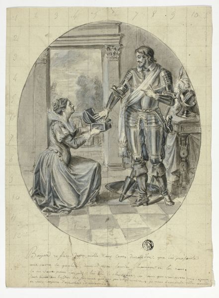 Curator: Ah, this print, "An Offering to Love," crafted in 1778 by Gavriil Skorodumov, offers us a window into the sentimental classicism popular at the time. Its home is now here at the SMK, Statens Museum for Kunst. Editor: My first impression is that it possesses an airy grace, almost ephemeral. The limited tonal range—that rosy monochrome— lends the scene a delicate, dreamlike quality. The composition, confined within the circle, feels deliberately contained. Curator: Indeed. It's an engraving, so that limited tonal range would have been deliberate, requiring great skill. Notice how Skorodumov echoes Neoclassical aesthetics then in vogue through depictions of women performing ritual acts; you see an engagement with virtue, sentiment, and idealized forms. These were potent images employed by elites during periods of shifting political terrains, projecting images of harmony and morality in the face of perceived social upheavals. Editor: Agreed. Technically speaking, the engraving showcases the artist's deft use of line to define form and create shading. It's a very controlled, precise execution, giving a real sense of depth despite being almost entirely linear. The postures and draping are reminiscent of classical sculpture. There's something carefully staged about it all. Curator: The image borrows significantly from iconography of ancient Greek and Roman traditions, a conscious nod toward a perceived Golden Age and deployed by institutions and academics to elevate culture in the broader collective imagination. Prints like this were key to distributing such ideas among growing audiences for art and design. Didactic engravings had an incredible capacity to shape morals and conduct through familiar visual metaphors, thus providing the growing bourgeois with instructions in appropriate attitudes. Editor: Yes, I see that now. So that seemingly contained composition reflects those tight societal structures that the elites of the day sought to maintain by way of propaganda—visual signposts directing individuals toward an appropriate path. Even in a work this visually serene, you can detect undertones of prescribed behaviour and class maintenance! Curator: Absolutely. It makes you ponder the impact of supposedly beautiful artworks upon individuals that lived with those structures. Editor: It's astounding how close examination of color, composition and theme leads us towards these discussions of its historical importance and institutionalization of meaning. Thank you!
